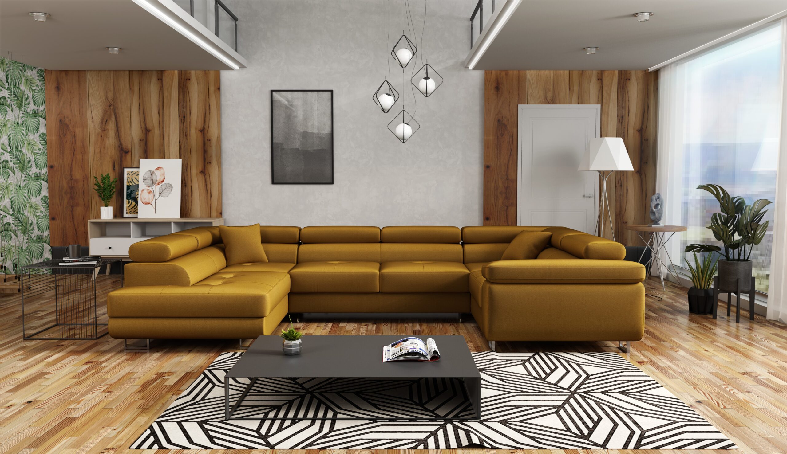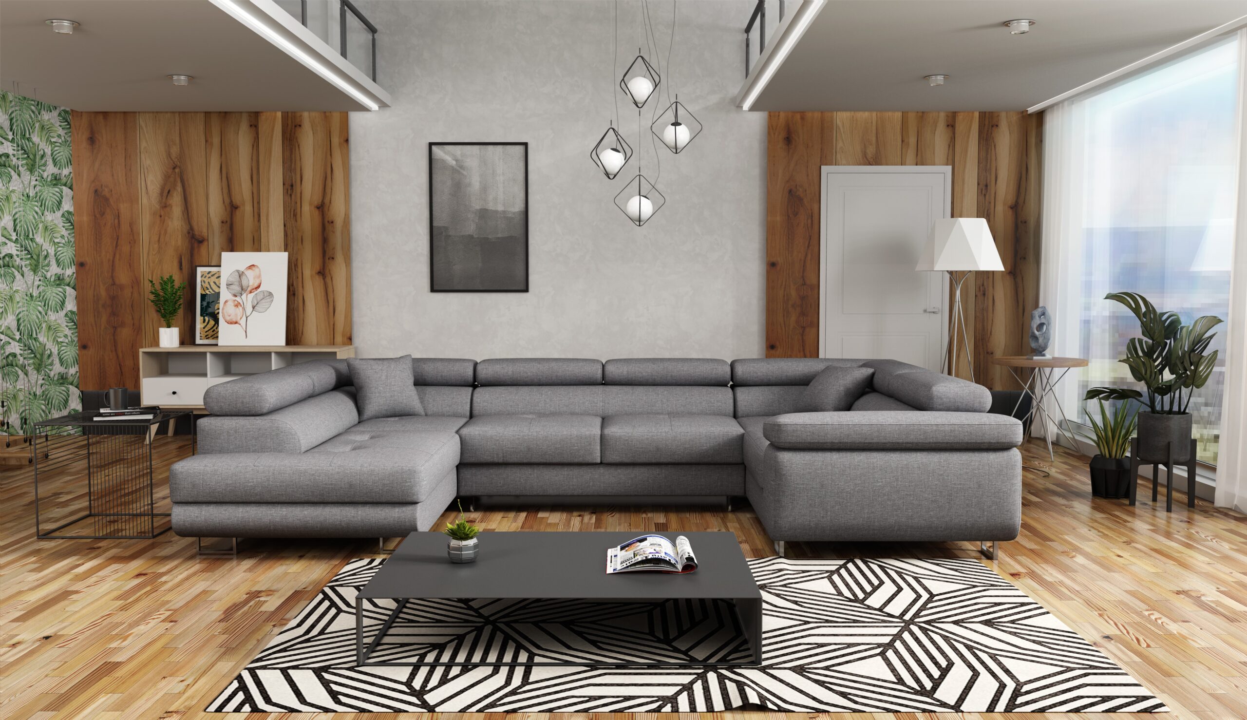 Rozkładany narożnik ALVARO ,,U” z pojemnikiem na pościel oraz funkcją spania, tworzy idealny mebel do twojego salonu albo sypialni. Regulowane zagłówki pomogą Ci idealnie dopasować wysokość oparcia.  Odkryj harmonię między stylem a praktycznością dzięki narożnikowi ALVARO!