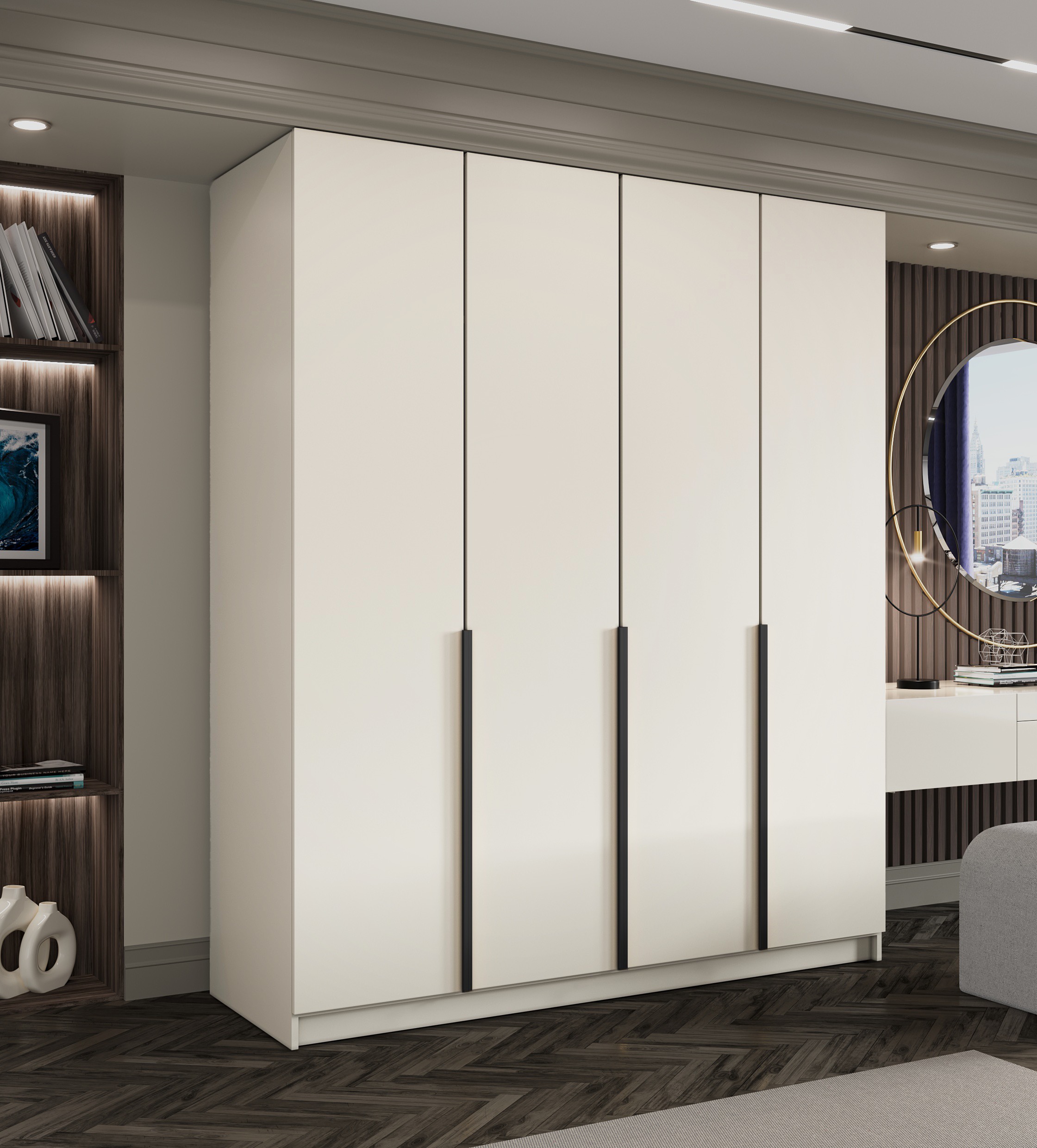 Pojemna szafa 4-drzwiowa LIZA 200 cm z systemem drzwi uchylnych.