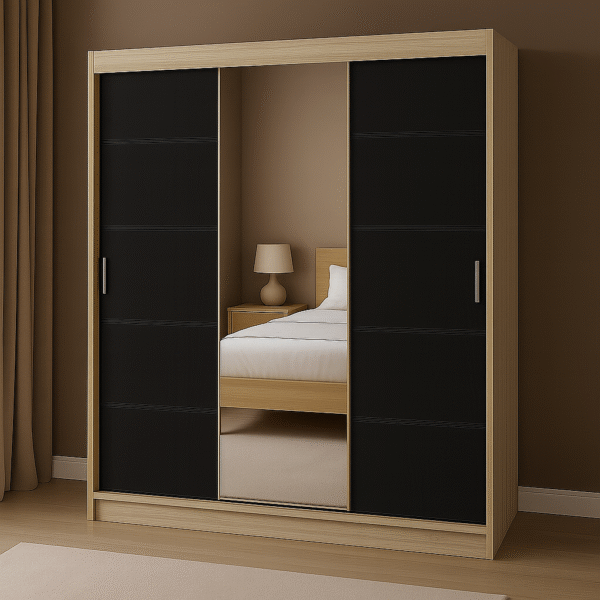 Szafa przesuwna RIO-3 180 CZARNY/DĄB SONOMA